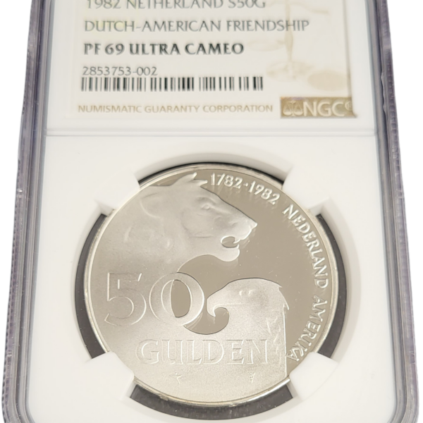Zie de hieronder de link naar PCGS van de munt zoals afgebeeld: https://www.pcgs.com/cert/47308214 De overige certificaat nummers zijn: 47308223, 47308225 en 47308248