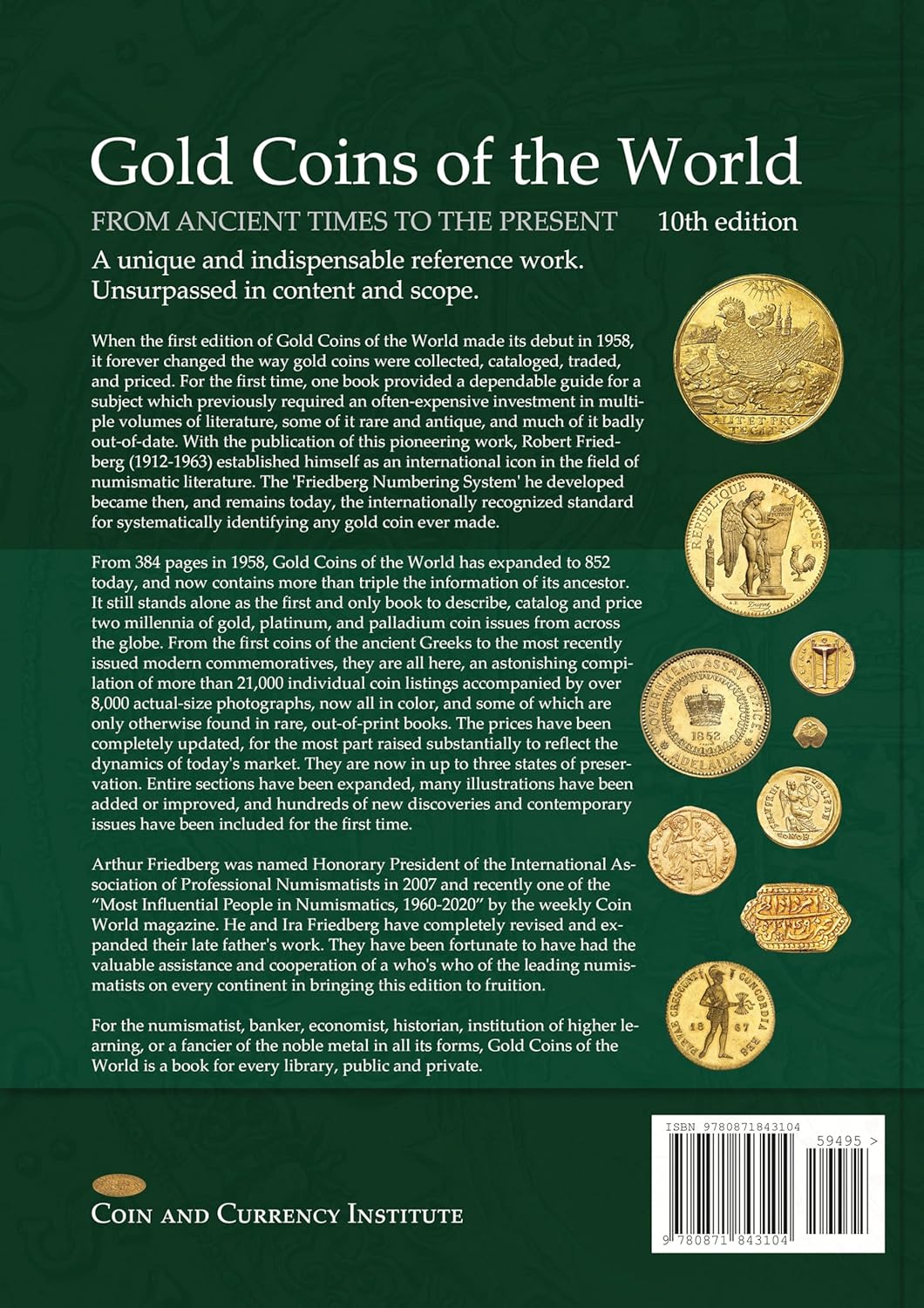 De 10e editie van Gold Coins of the World is hét standaardwerk voor iedereen die zich bezighoudt met het verzamelen, taxeren of bestuderen van gouden munten. Al sinds de eerste publicatie in 1958 is dit boek dé internationale referentie voor numismaten, handelaren, musea en liefhebbers van edelmetalen. Met de nieuwste editie, volledig herzien en uitgebreid door Arthur en Ira Friedberg, zet dit monumentale werk opnieuw de toon in de wereld van de numismatiek.