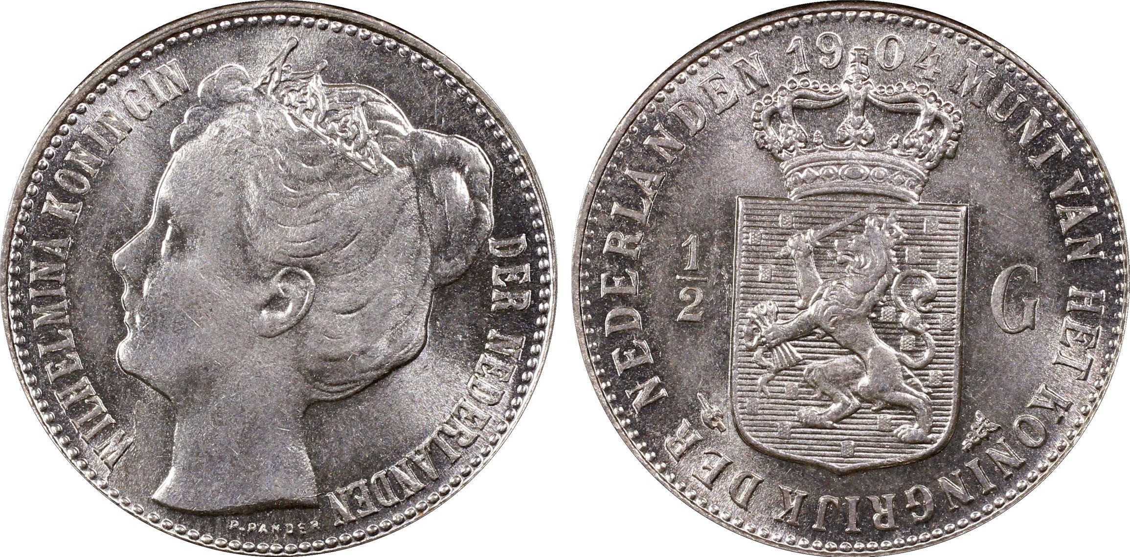 De oplage van de halve gulden 1904 bedroeg 1.000.000 stuks, maar ondanks dit relatief hogere cijfer is het jaartal zeer moeilijk te vinden in hoge kwaliteit. Het merendeel van de munten is zwaar in circulatie geweest, waardoor een exemplaar in mint state en zeker in MS64 tot de absolute zeldzaamheden behoort binnen de Wilhelmina-serie.