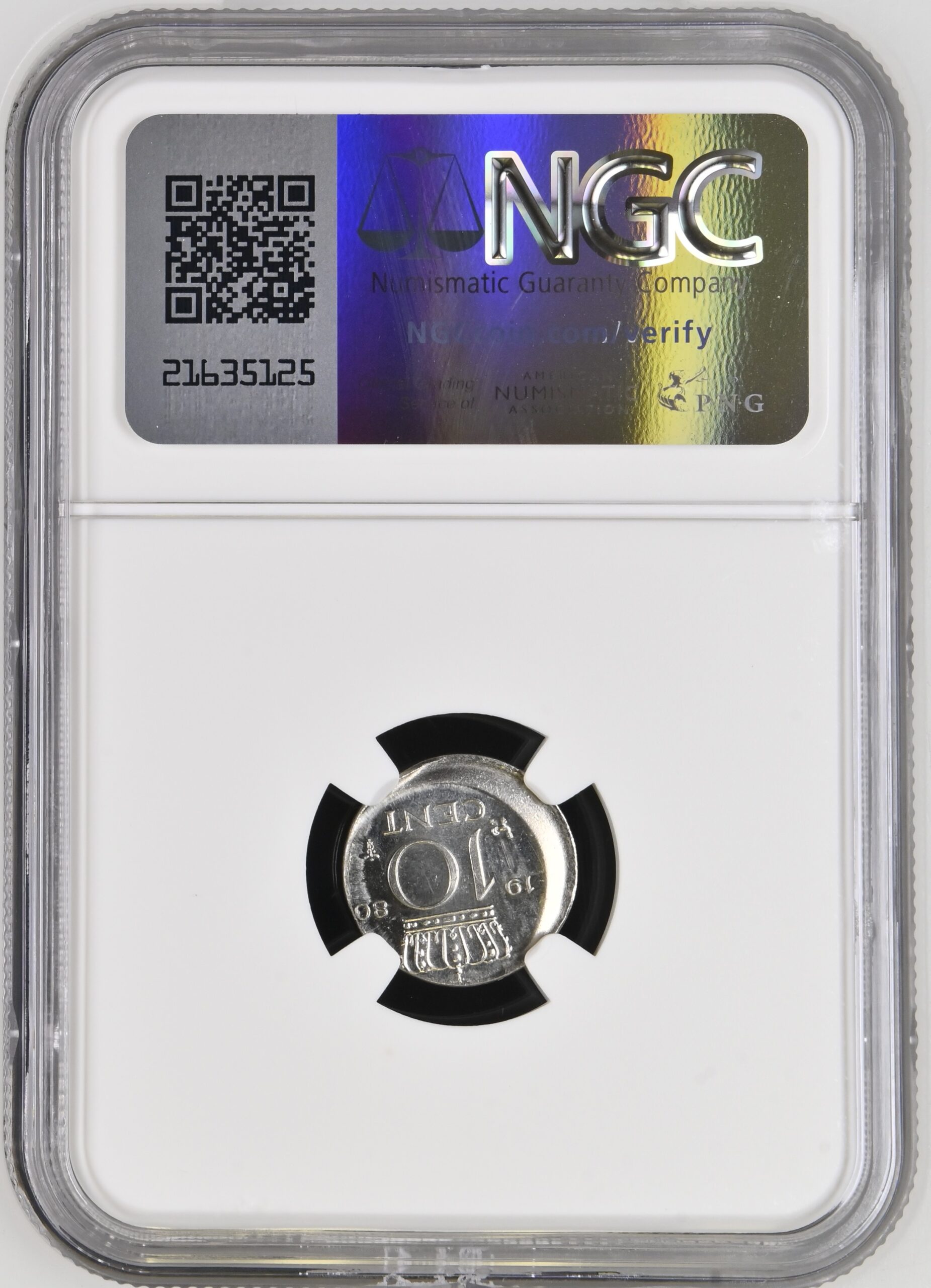 Koningin Juliana 10 cent 1980 Mint Error NGC MS67