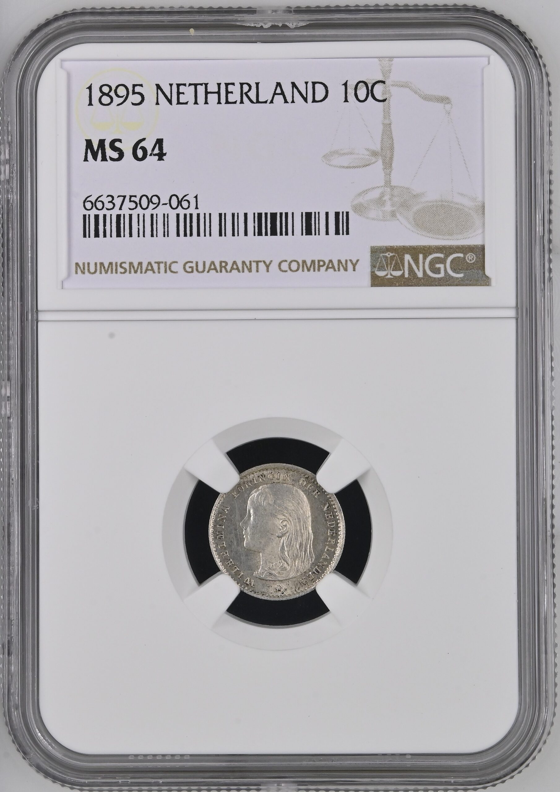 Koningin Wilhelmina 10 cent 1895 NGC MS64 (pop 5/5)