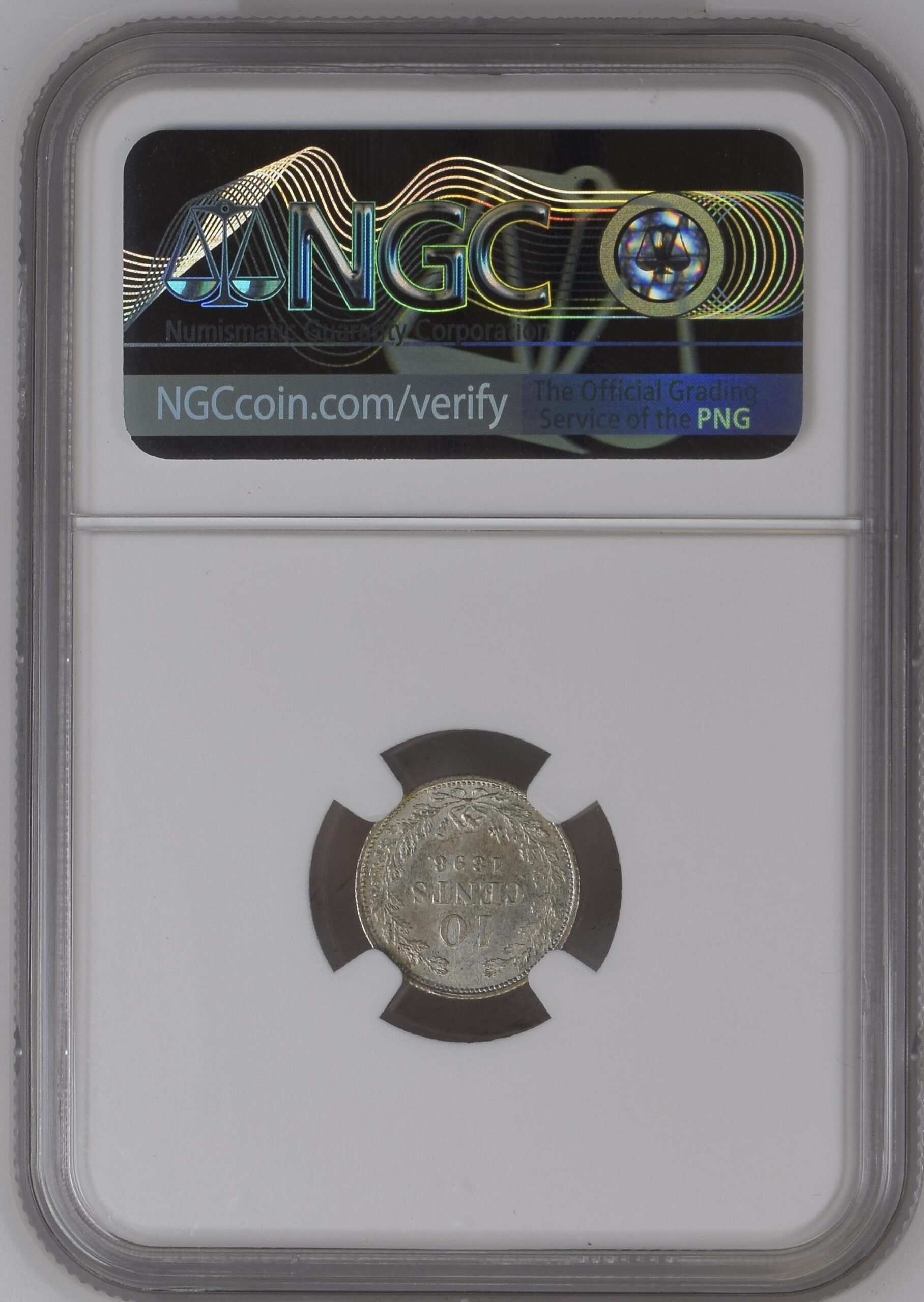 Deze 10 cent 1898 van Koningin Wilhelmina is door NGC gecertificeerd in MS63+, een aantrekkelijke en zeldzame kwaliteitsgraad voor dit vroege muntjaar. Binnen de officiële NGC-populatie staat dit exemplaar als het enige in MS63+, terwijl er nog 3 munten in een hogere kwaliteit bekend zijn.