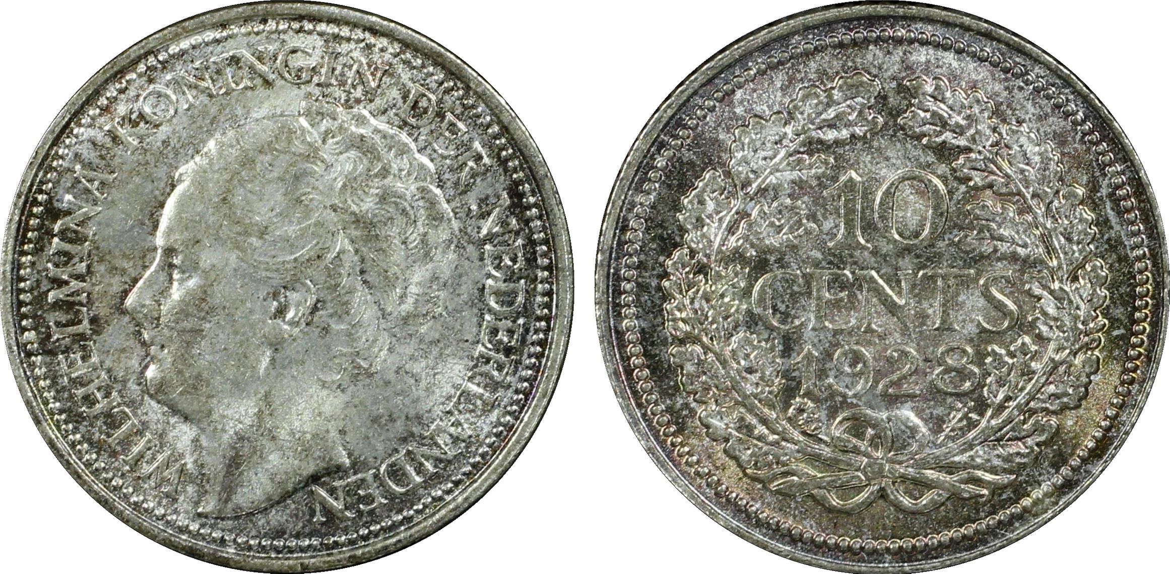 Koningin Wilhelmina 10 cent 1928 MS65 PCGS gecertificeerd (Top pop 5/0)