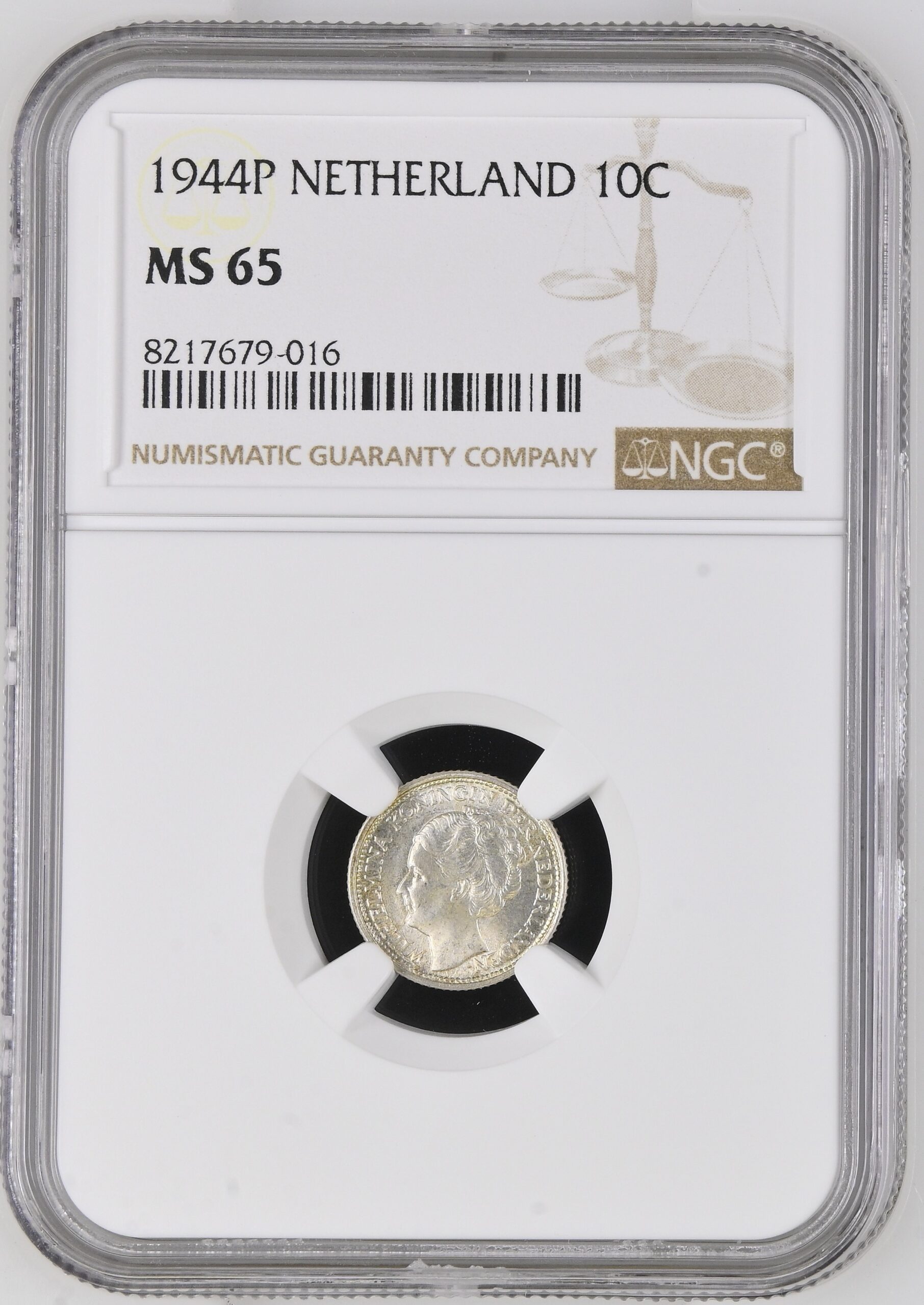 Koningin Wilhelmina 10 cent 1944 EP MS65 NGC gecertificeerd (pop 51/13)