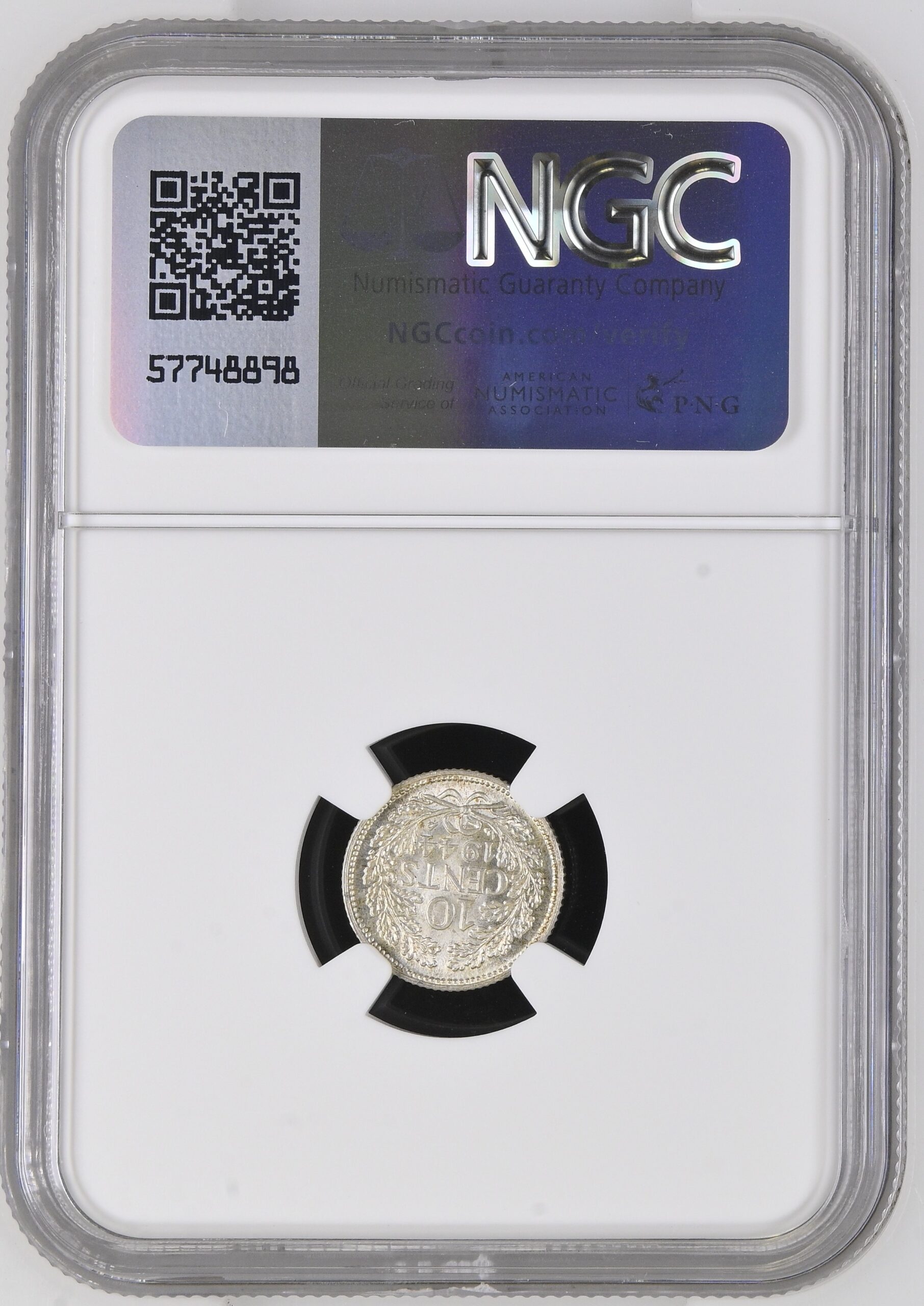 Koningin Wilhelmina 10 cent 1944 EP MS65 NGC gecertificeerd (pop 51/13) Zilver