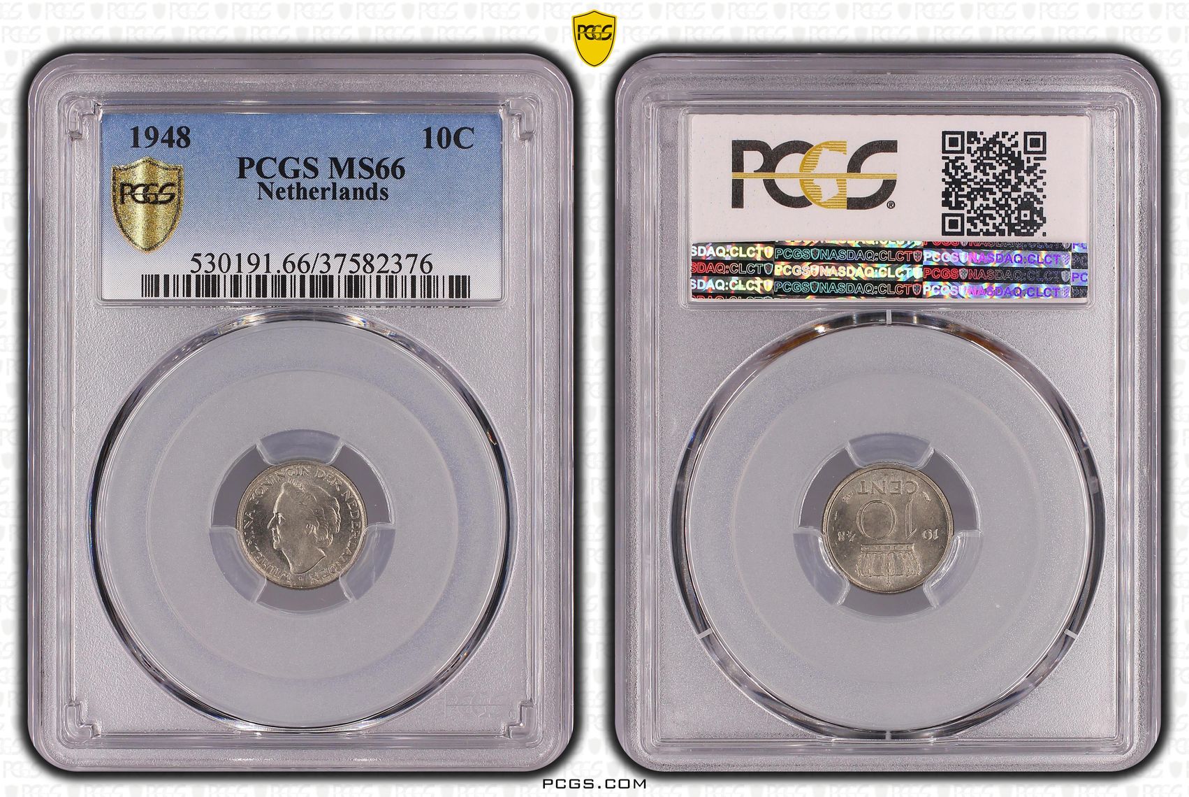 Koningin Wilhelmina 10 cent 1948 MS66 PCGS gecertificeerd (Top pop 9/0)