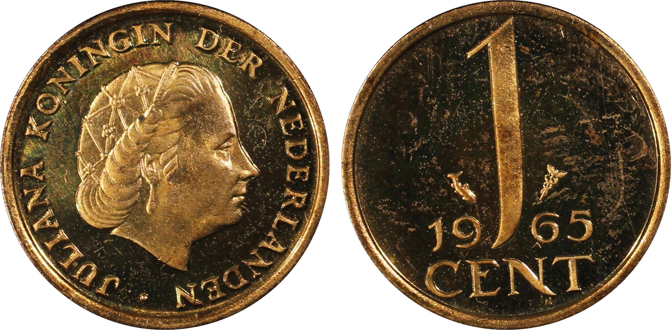 Koningin Juliana 1 Cent 1965 Proof PR64 Brown (BN) PCGS gecertificeerd (pop 1/0 = TOP POP)