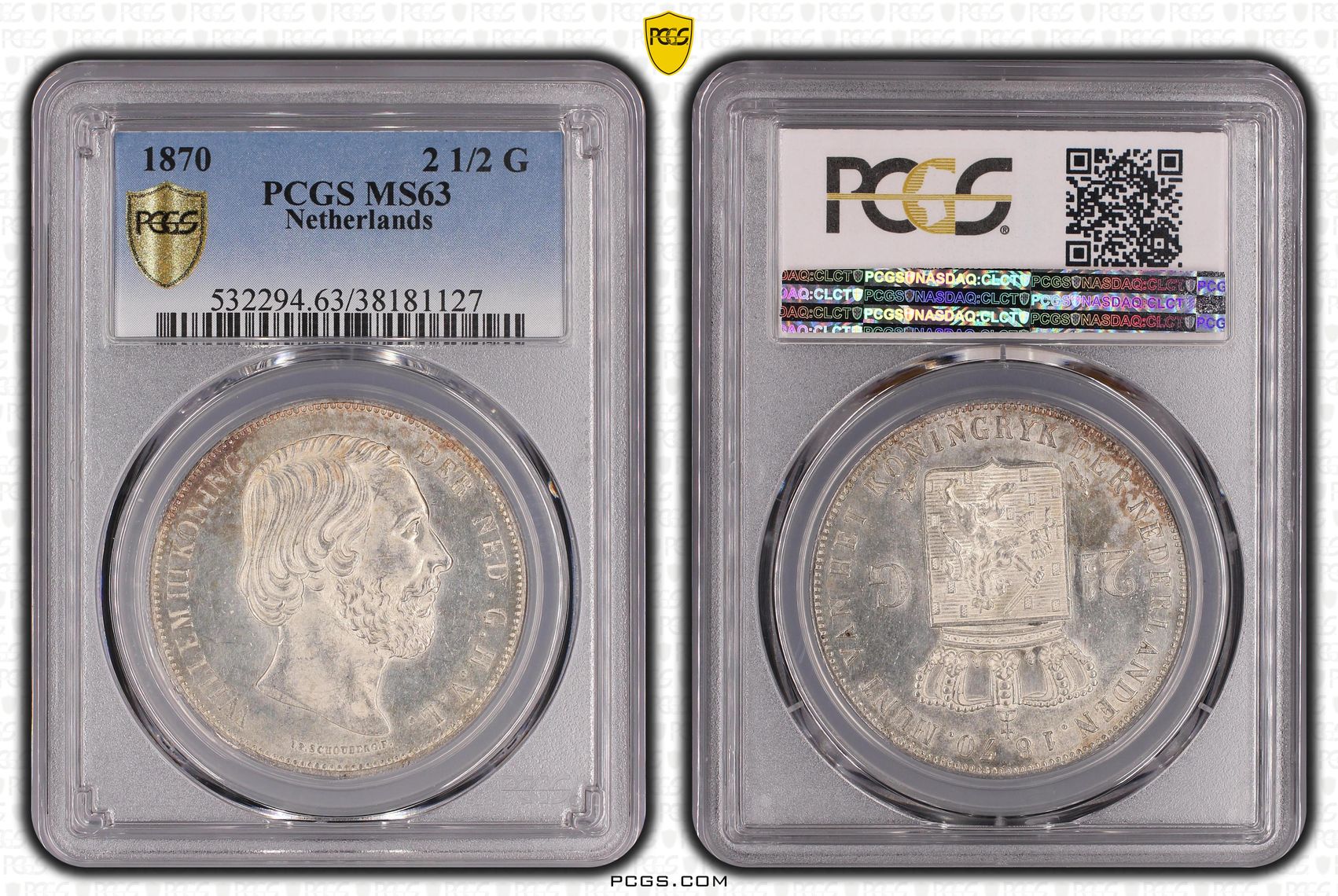 Koning Willem III 2 1/2 Gulden 1870 MS63 PCGS gecertificeerd (pop 10/11)