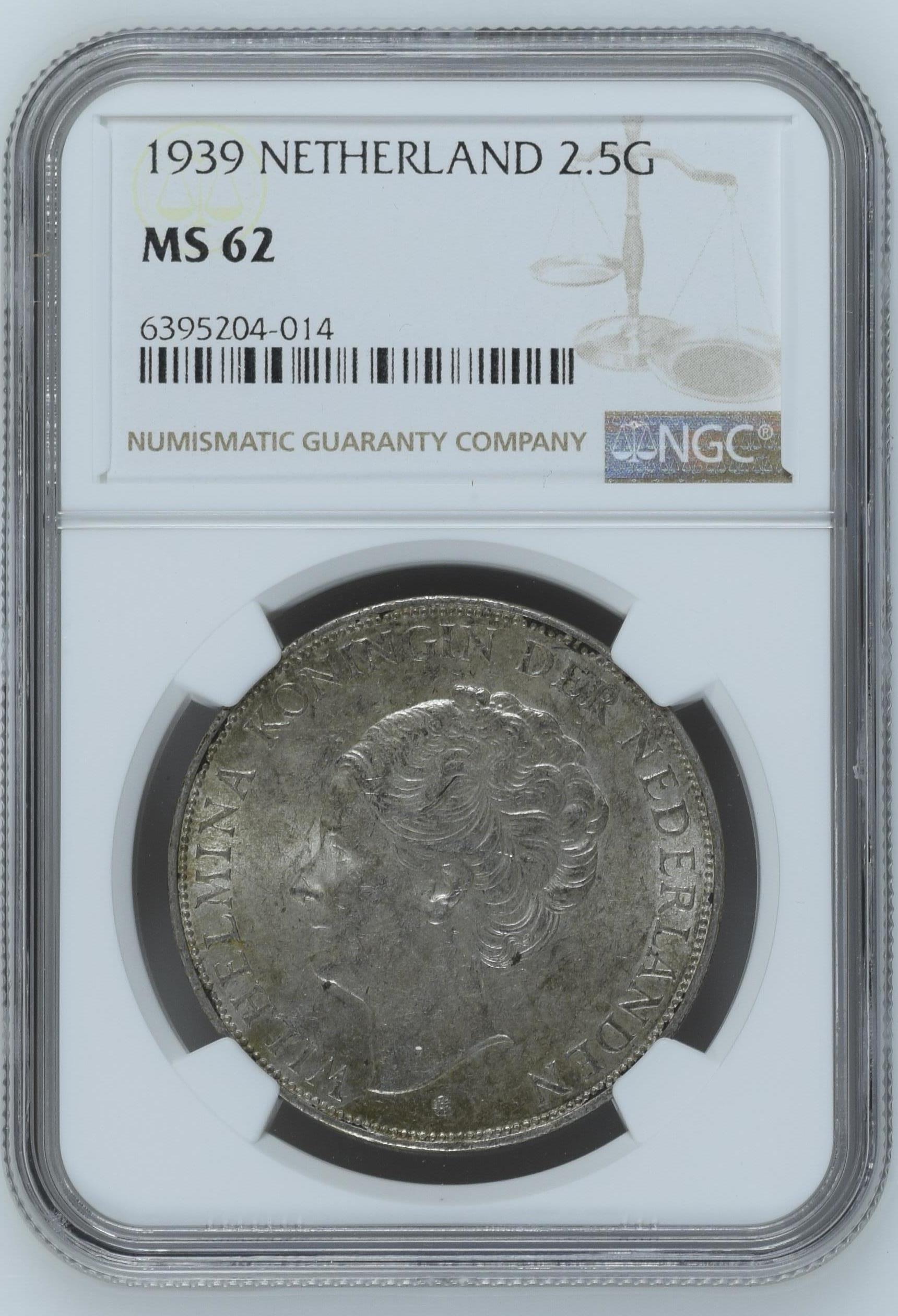 Koningin Wilhelmina 2 1/2 gulden 1939 MS62 NGC (pop 37/11)