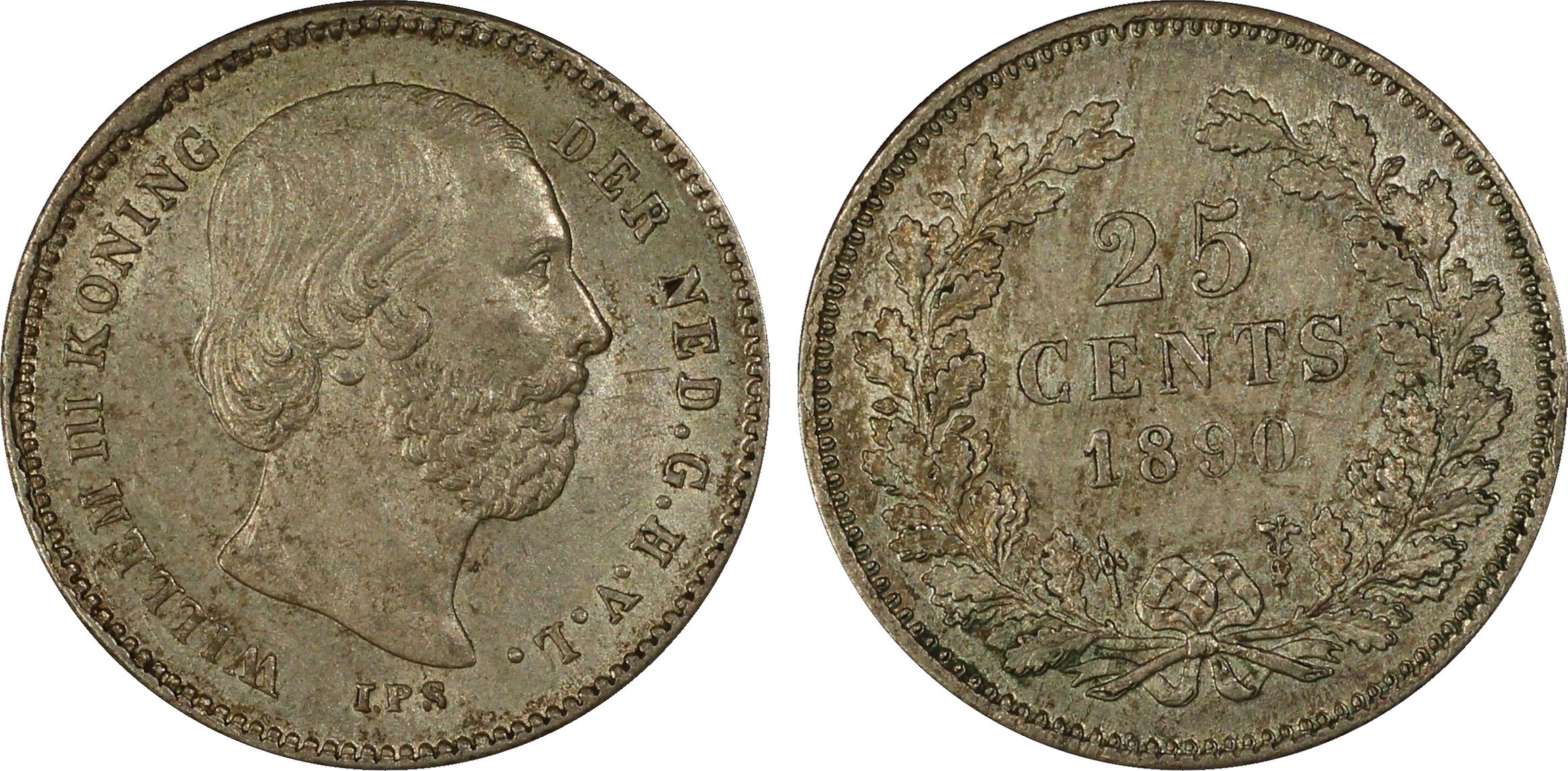 Koning Willem III 25 cent 1890 MS62 PCGS (met punt) (pop 1/5)