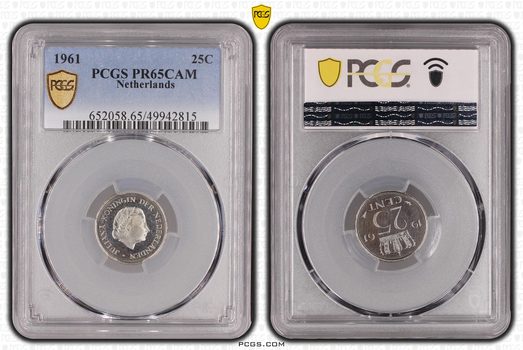 Koningin Juliana 25 cent 1961 Proof PCGS PR65 CAM gecertificeerd (Top pop 5/0)