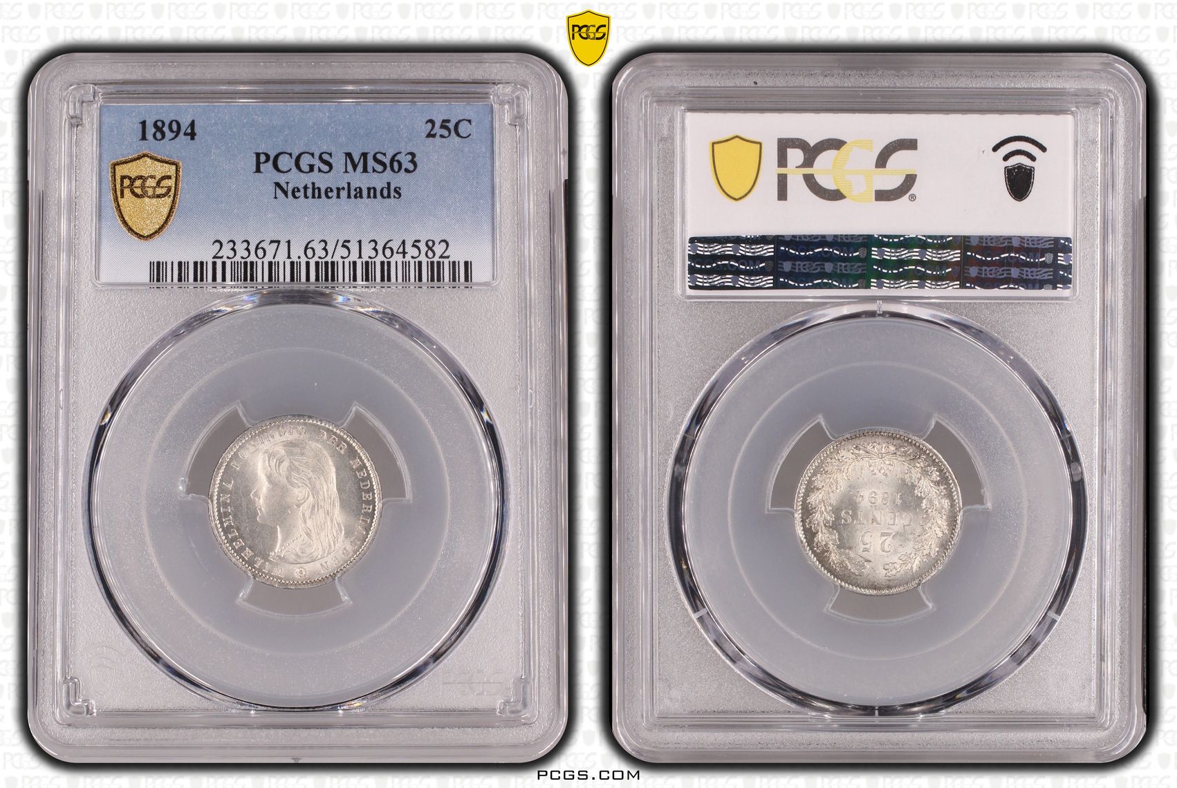Koningin Wilhelmina 25 cent 1894 MS63 PCGS (pop 6/5)