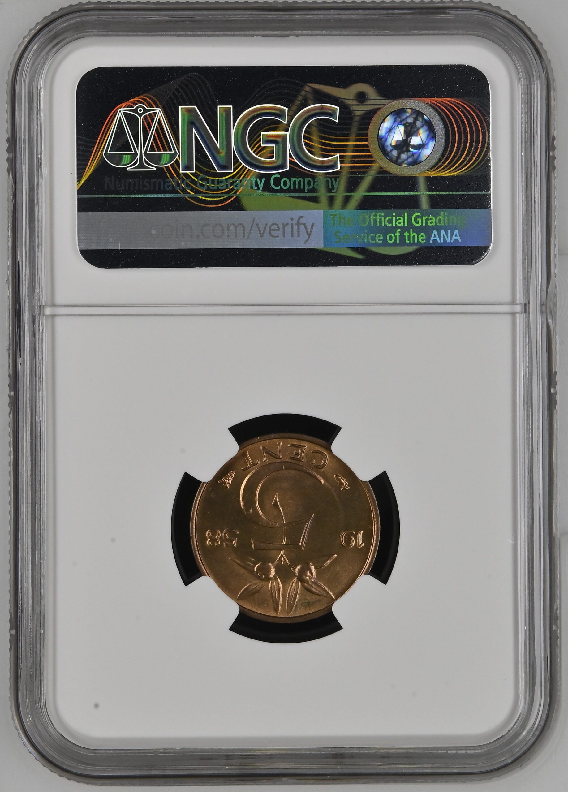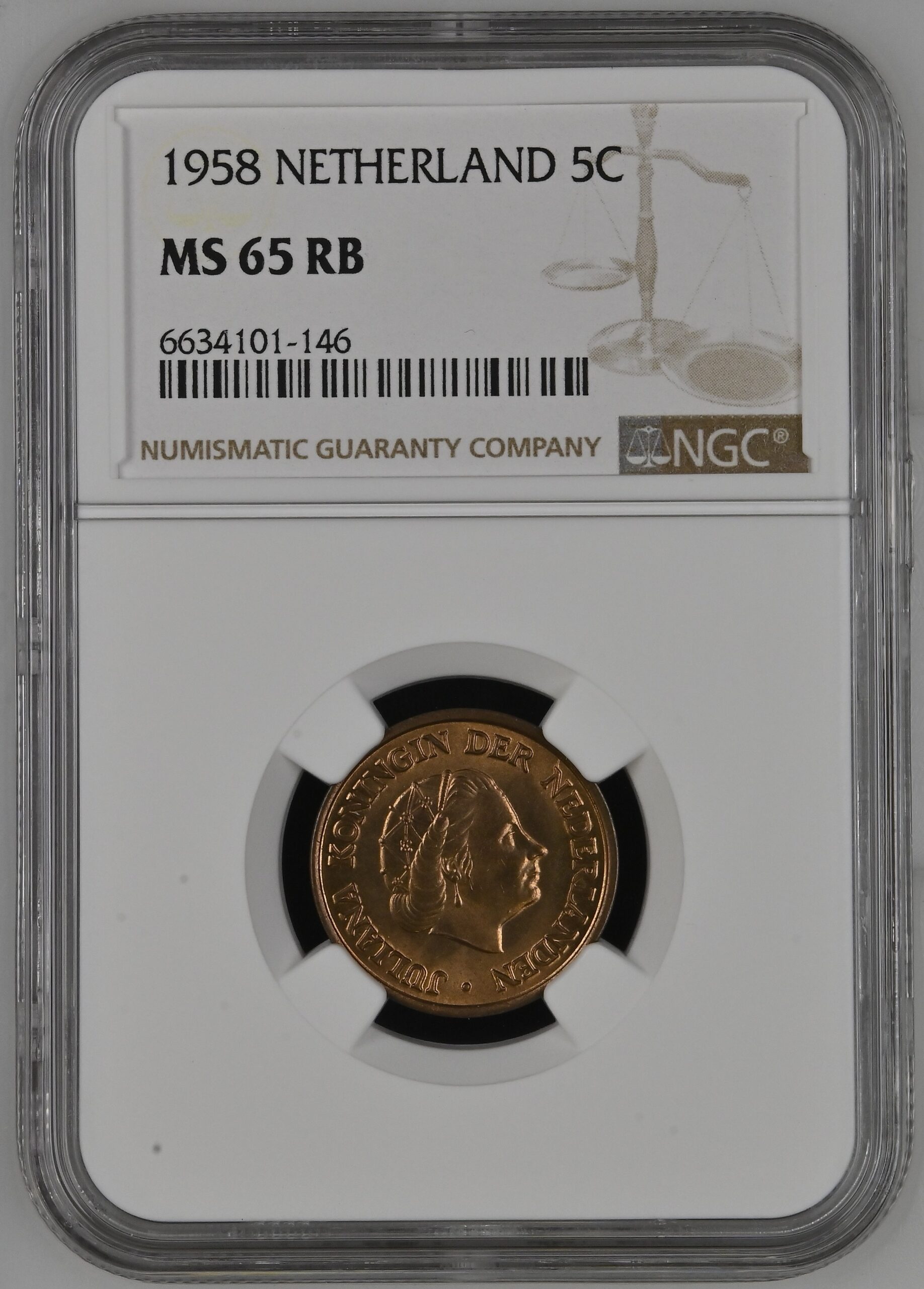 Koningin Juliana 5 cent 1958 – MS65 RB NGC gecertificeerd (Top pop 1/0)