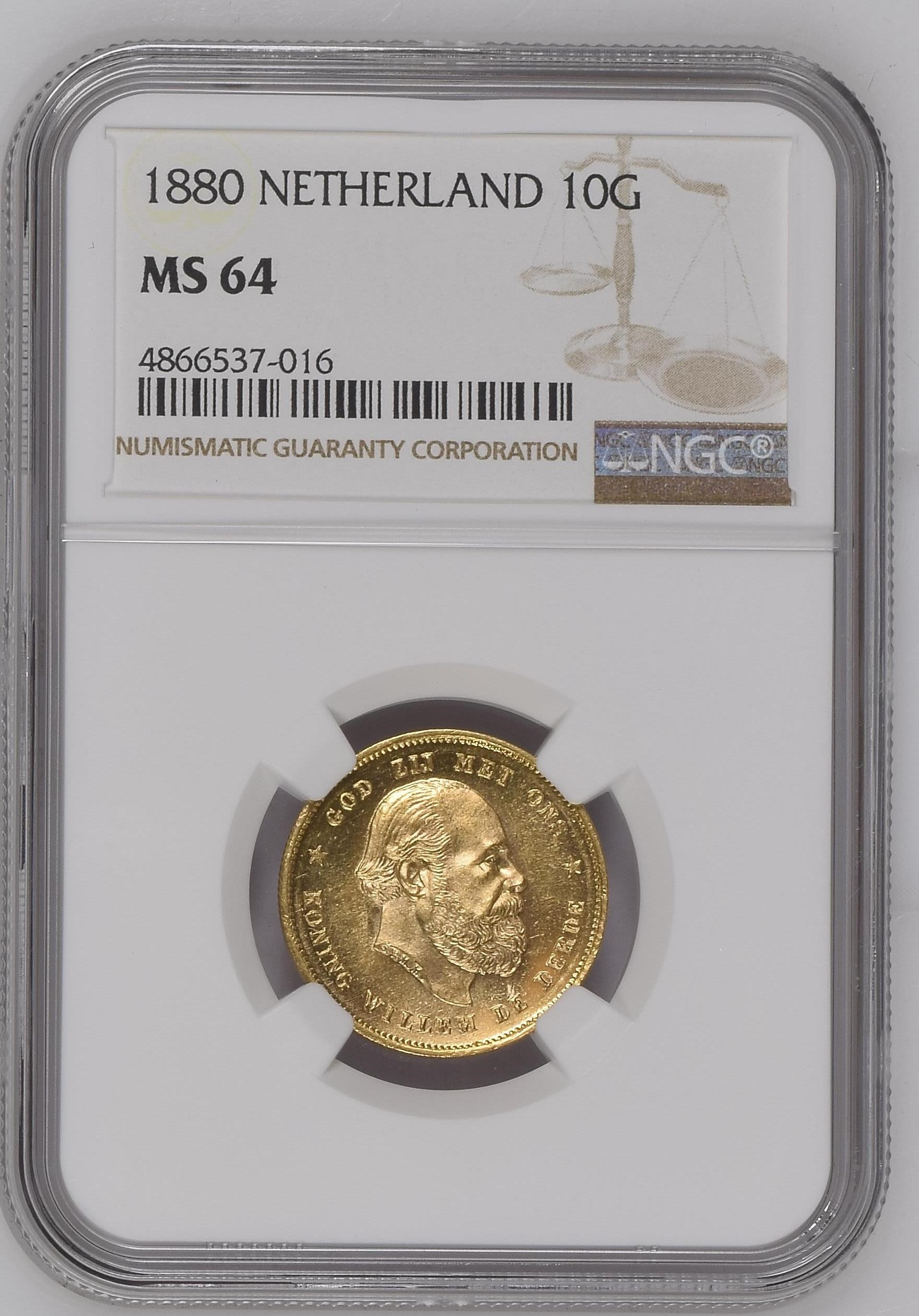 Gouden Willem III 10 gulden 1880 MS64 NGC (population 16/57)