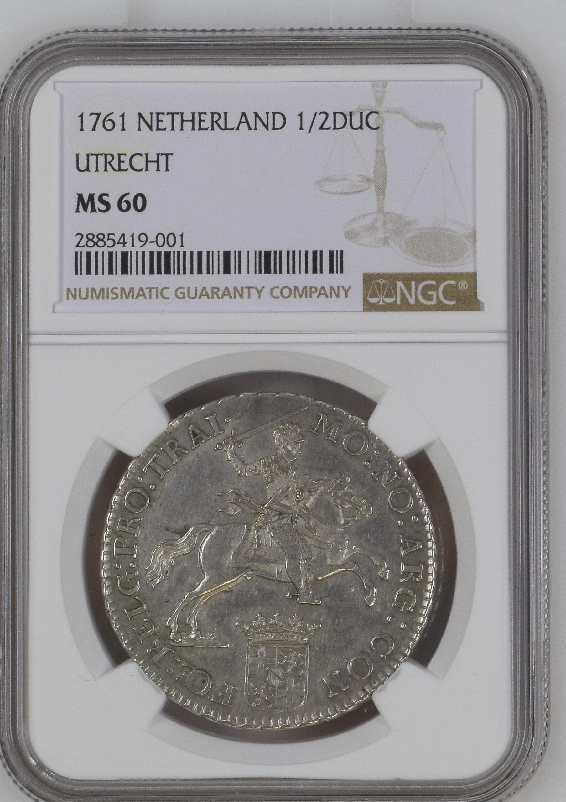 Provincie Utrecht zilveren halve dukaton 1761 met bloemrand NGC gecertificeerd MS60 (pop 1/11) Zilver