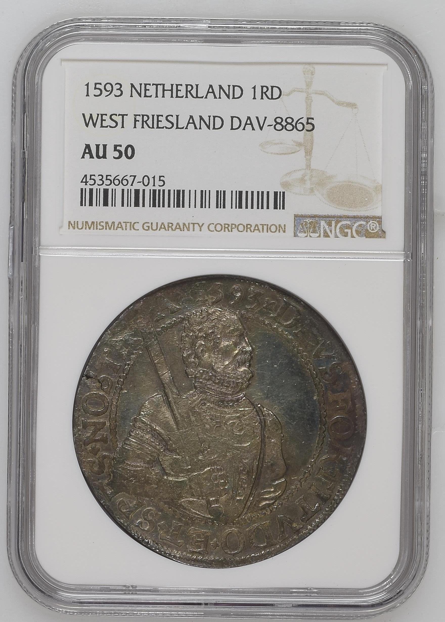 Provincie W.Friesland Prinsendaalder 1593 NGC AU50 Patina (pop 1/3) Zilver