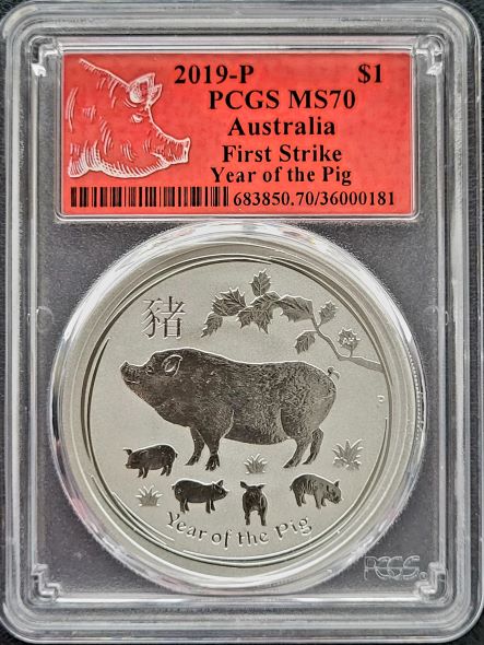 Lunar II – Year of the Pig – 1 oz 2019 PCGS MS70 (POP 1.090) Zilver