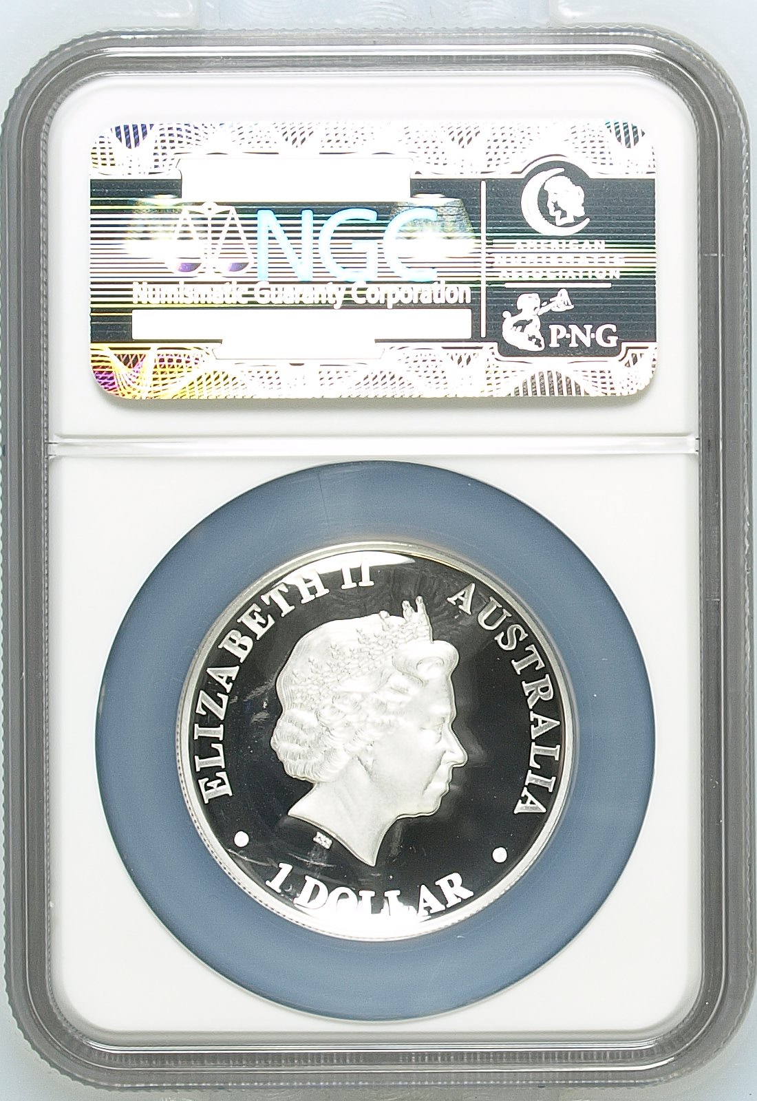 De Wedge Tailed Eagle is een prachtige Australische munt uitgegeven door de Perth Mint. Op de voorkant staat een prachtige afbeelding van de Eagle, op de achterkant het portret van Queen Elizabeth II. De munt is gegraded door NGC en beoordeeld met een kwaliteitsscore van Proof PF69UCAM (munten kunnen een score krijgen van 1 t/m 70 waarbij 70 de hoogst mogelijke score is). Deze munten bevatten een zilver gehalte van 99,9%. De Slab bevat op het label de handtekening van John M. Marcanti (designer van de Eagle).
