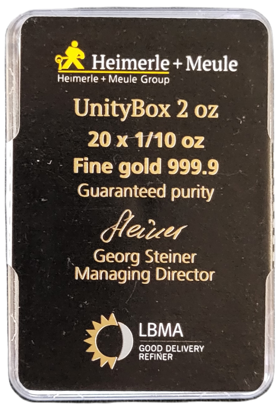 20 x 1/10 oz Heimerle Meule Goudbaar – 2 oz UnityBar collection – LBMA gecertificeerd Goud