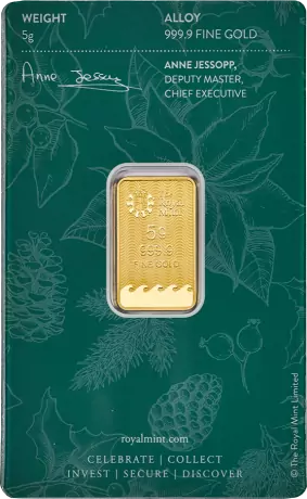 Leuk geschenk voor de kerstdagen!! De baren wegen 5 gram, en bevatten 99,99% goud. De baren zijn geproduceerd door The Royal Mint in England. De baren hebben het LBMA Good Delivery Refiner keurmerk.
