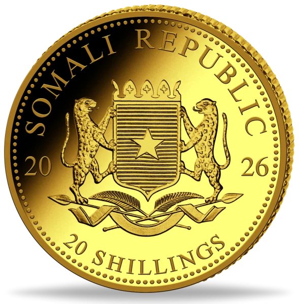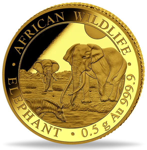 De gouden Somalische Olifant 0.5 gram wordt pas voor het eerst in 2026  geslagen en is daarmee een nieuwe munt qua gewicht. Het is ook van de weinige Gouden half gram munten met een Afrikaanse achtergrond!