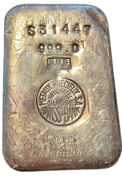 Deze gegoten baren wegen 1000 gram, en bevatten 99,9% zilver. De baren zijn geproduceerd door Métaux Précieux Zwitzerland.