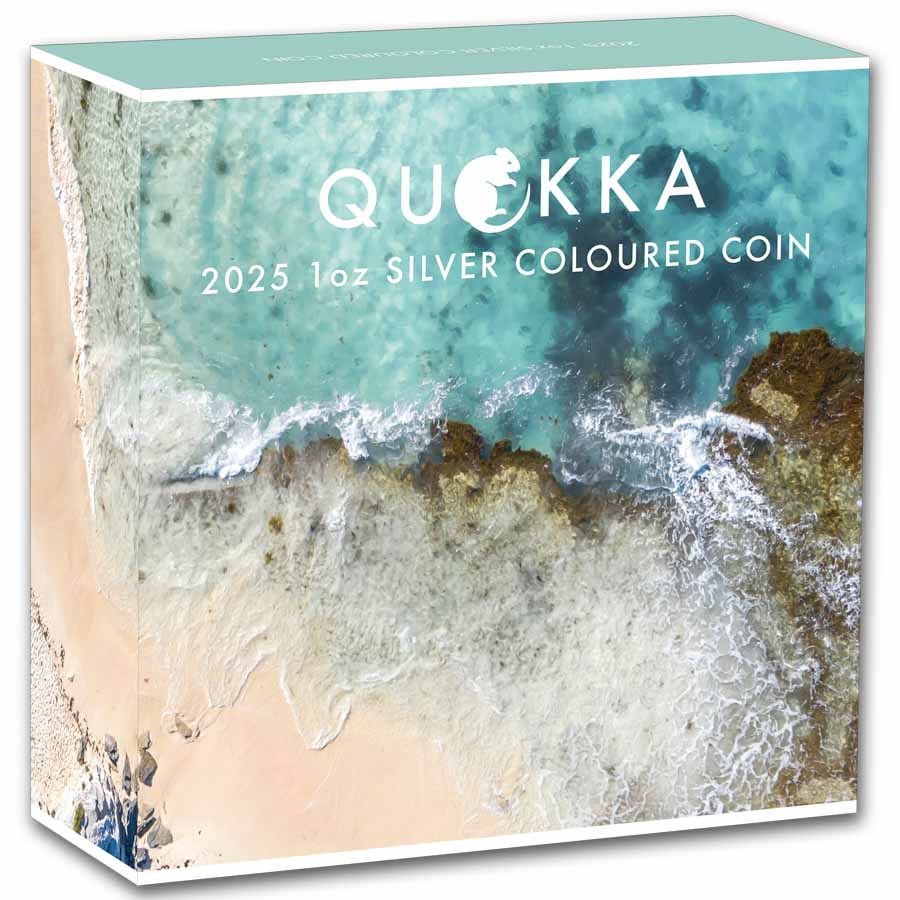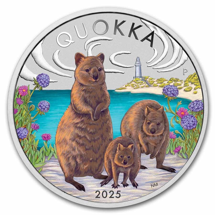 Dit vrolijke familielid van de kangaroo genaamd Quokka staat bekend om zijn goedlachse uitstraling.  De 1 oz munt van de Perth Mint komt uit 2025 en is belegd met prachtige kleuren.