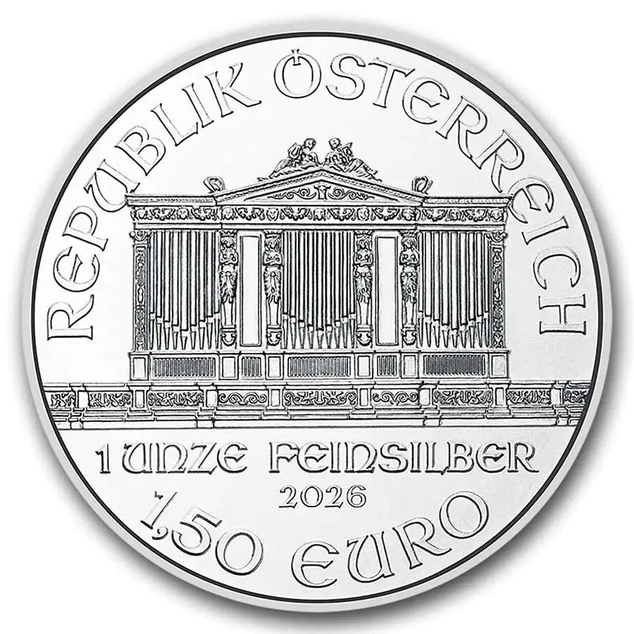 De Philharmoniker uit 2026 bevat een zilver gehalte van 99,9% en is geslagen door de Oostenrijkse Mint. De Philharmoniker wordt pas sinds 2008 geslagen, en is daarmee een vrij nieuwe munt onder de zilveren beleggingsmunten. Het is tevens de eerste Europese zilveren beleggingsmunt.