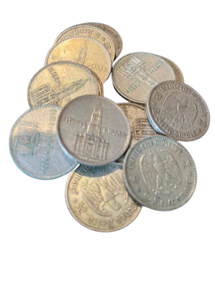 De zilveren 2 Duitse Marken is in 1934 uitgegeven. De munten zijn vroeger wettig betaalmiddel geweest in Duitsland. De munten wegen 8 gram en hebben een zilver gehalte van 62.5% (625/1000). In elke munt zit 5 gram netto zilver.