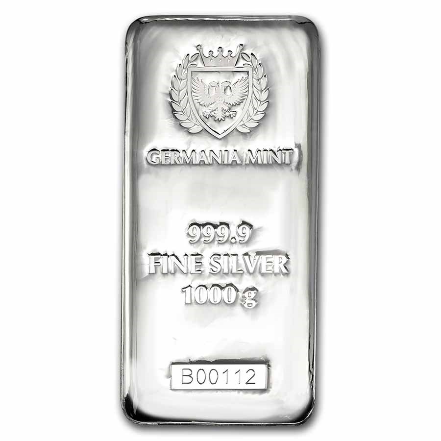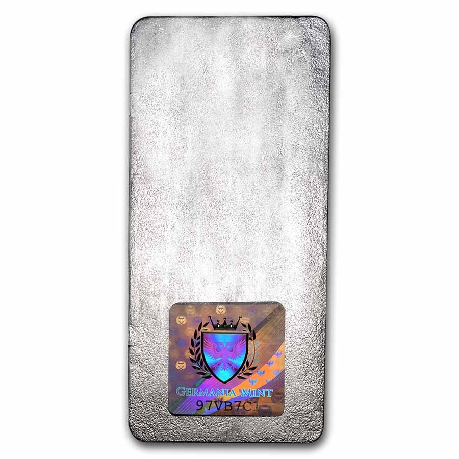 Deze prachtige 1 kg Germania Mint zilverbaar heeft een gewicht van 1 kilo (1000 gram) en is geproduceerd door een relatief jonge Germania Mint (opgericht in 2019).