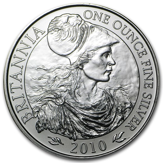 De Britannia 1 oz 2010 munten worden geproduceerd door de Britse Royal Mint. Deze munten zijn in Engeland wettig betaalmiddel (2 pond). De munten wegen 31,21 gram en bevatten 99,9% zilver en hebben een diameter van 38,61 mm.