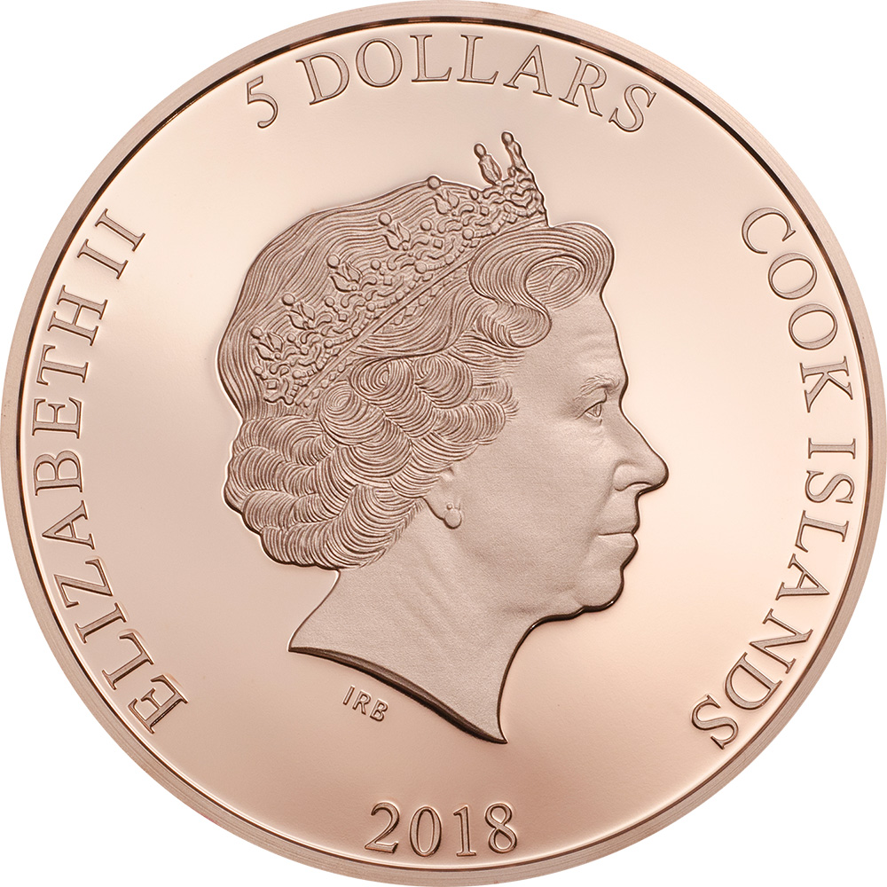 Op de achterkant van deze originele zilveren munt is het prachtige gekleurde masker van de Spaanse schilder Salvador Dali afgebeeld, op een rosé gouden bakstenen achtergrond. Het masker werd beroemd dankzij de televisieserie “La Casa de Papel”, waar een georganiseerde bende dit masker droeg in een poging de Nationale Staatsmunt te beroven. Aan de linkerkant van de achterkant staat de inscriptie: “Salvatore” – de naam van de munt. Op de voorzijde van de munt staat de beeltenis van Hare Majesteit Koningin Elizabeth II en de inscripties: “ELIZABETH II” – de naam van de koningin, “5 DOLLARS” – de nominale waarde, “COOK ISLANDS” – het uitgevende land en “2018”. – het jaar van uitgifte.