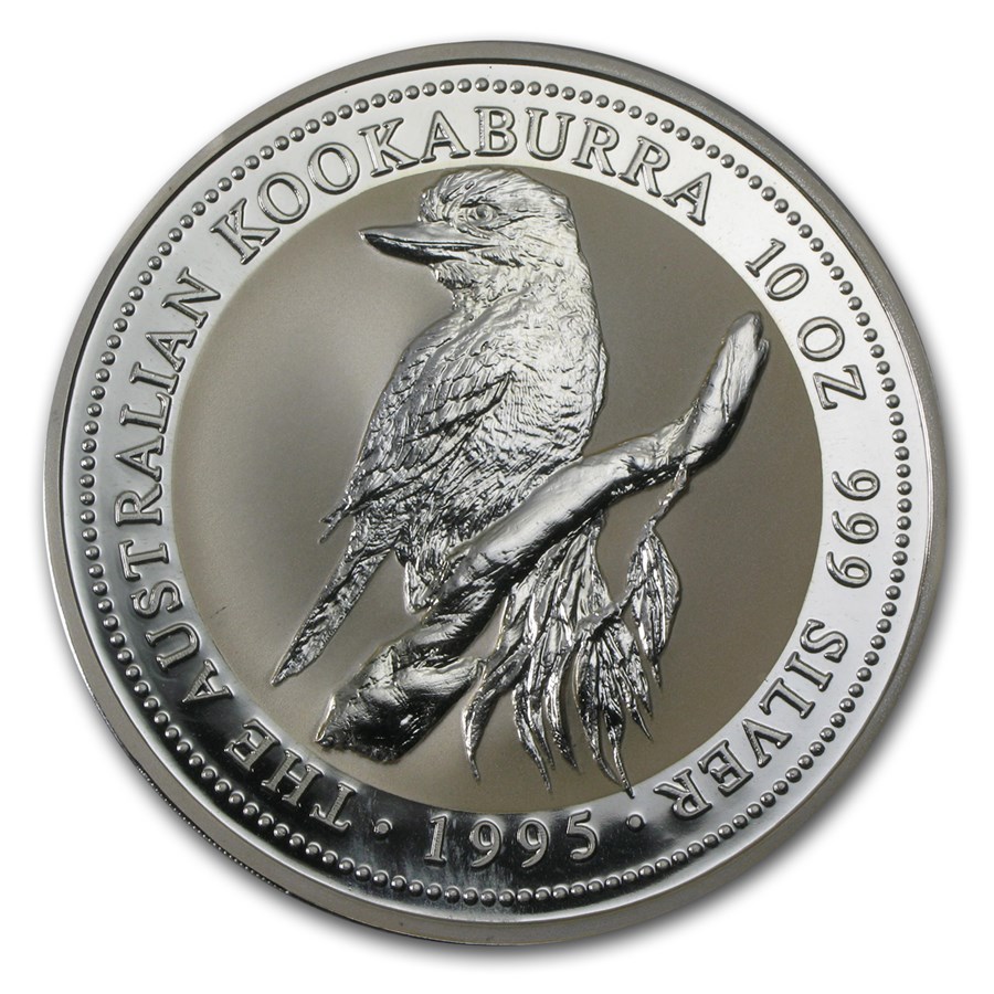 De Kookaburra 10 oz 1995 (Of Lachvogel in het Nederlands) is een prachtige Australische munt uitgegeven door de Perth Mint. Op de voorkant staat een prachtige afbeelding van de Kookaburra, op de achterkant het portret van Queen Elizabeth II. Elk jaar heeft de munt op de voorkant een ander ontwerp van de Kookaburra. Deze munten bevatten een zilver gehalte van 99,9%.