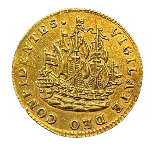 Deze gouden Scheepjesschelling 1778 uit West-Friesland is een uiterst zeldzaam en historisch aantrekkelijk stuk. In tegenstelling tot de reguliere zilveren uitgiften, betreft het hier een bijzondere uitvoering in goud, vervaardigd op het gewicht van twee dukaten (ca. 6,86 gram). Dergelijke stukken zijn vermoedelijk vervaardigd als prestige-object of cadeau, en komen slechts zeer sporadisch op de markt.