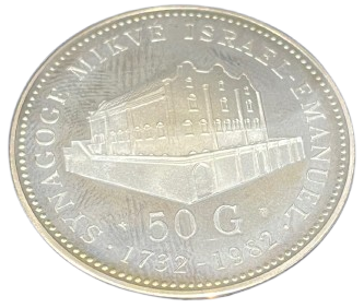 De Nederlandse Antillen 50 Gulden 1982 Synagoge Proof-munt is een waardevol en uniek verzamelobject, uitgegeven ter ere van de historische Mikvé Israel-Emanuel Synagoge in Willemstad, Curaçao. Deze synagoge, opgericht in 1732, is de oudste nog actieve synagoge in het westelijk halfrond en een belangrijk symbool van religieuze en culturele geschiedenis op de Nederlandse Antillen.