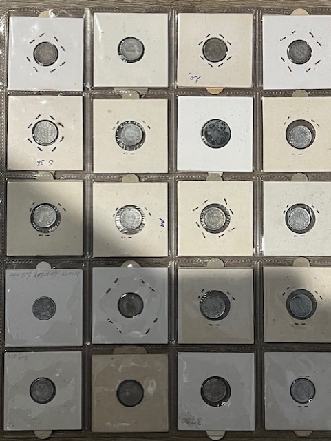 Diverse jaren zilveren dubbeltjes in verschillende kwaliteiten van goed t/m zeer fraai -. Er kunnen soms dubbele munten tussen zitten, soms ook Willem I, een goede mix van jaartallen. De munthouders kunnen beschreven zijn. Voorbeeld foto!