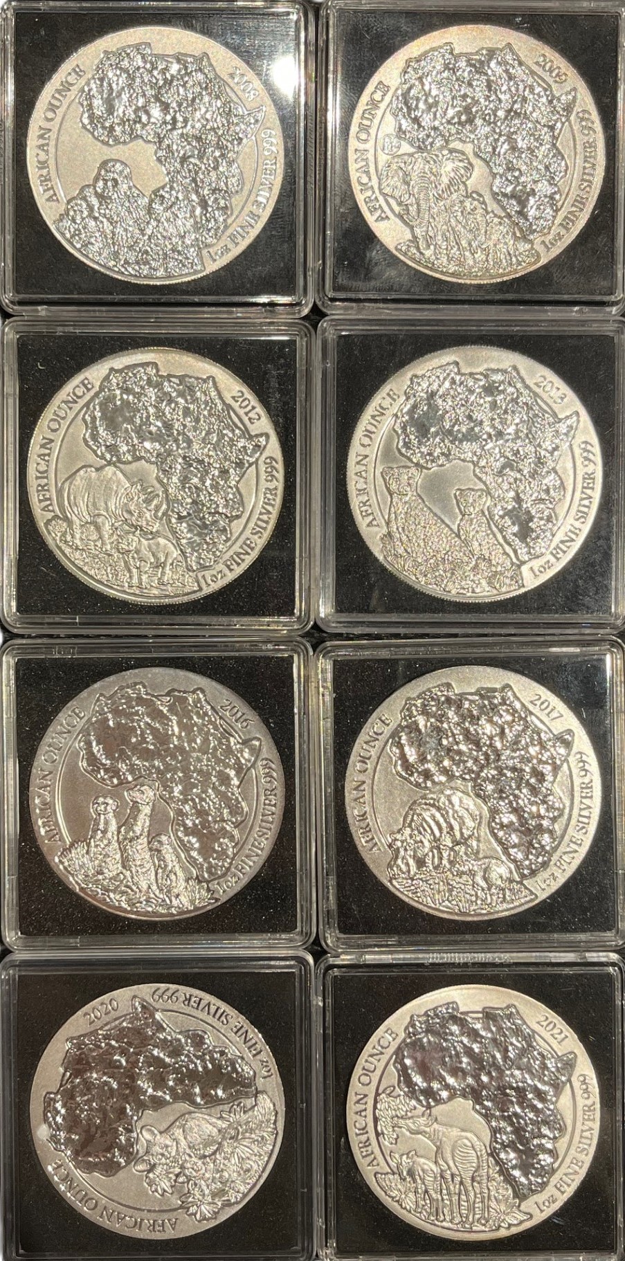 SERIE African Ounce series – Rwanda 1 oz compleet 2008 t/m 2023 Zilver