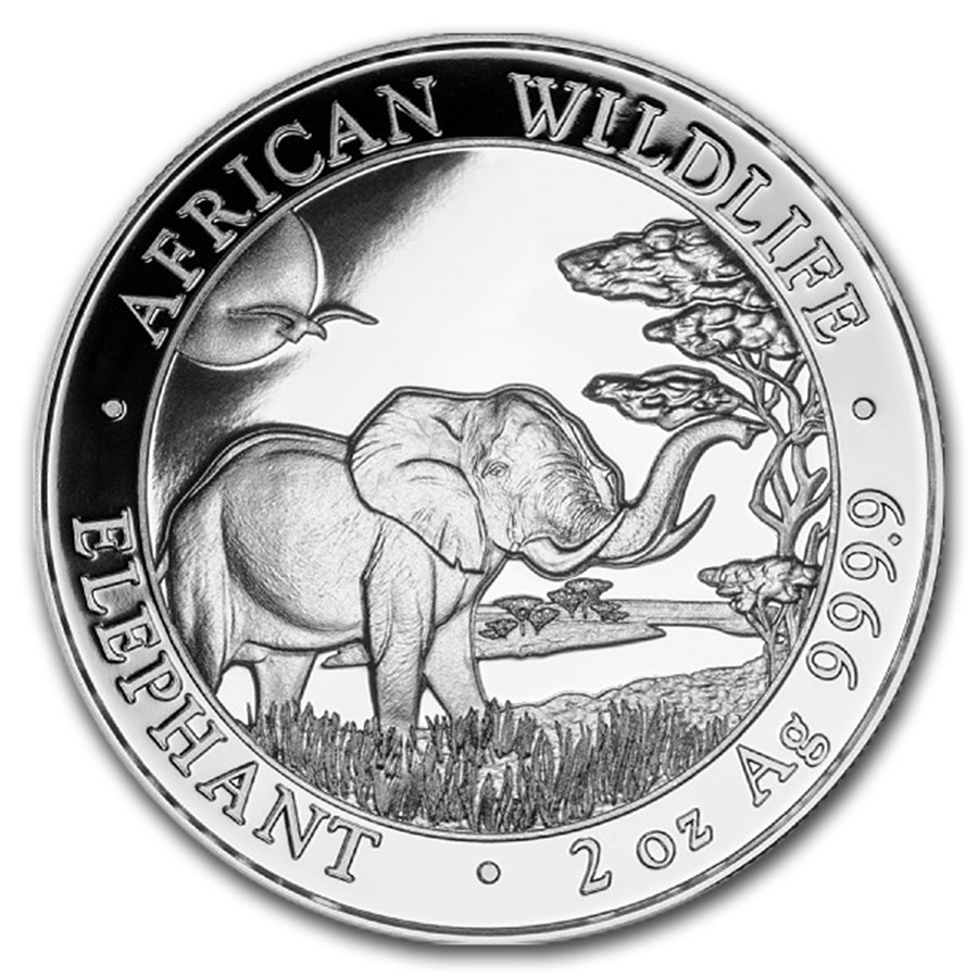 De Somalische Olifant wordt pas sinds 2004 geslagen en is daarmee een relatief nieuwe munt. Het is ook van de weinige zilveren bullion munten met een Afrikaanse achtergrond! De 2 oz munt wordt pas sinds 2017 uitgegeven.