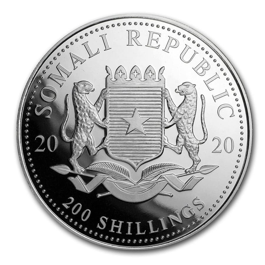 De Somalische Olifant wordt pas sinds 2004 geslagen en is daarmee een relatief nieuwe munt. Het is ook van de weinige zilveren bullion munten met een Afrikaanse achtergrond! De 2 oz munt wordt pas sinds 2017 uitgegeven.